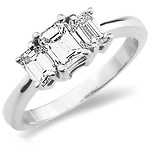 Select one of our magnificent three-stone rings that are brilliant in more ways than one. Our dashing three diamond gemstone gold rings represent the past, present, and future and can be bought with side diamonds to fashion a lush diamond brilliance or without side stones to create a simple elegance. Traditionally, the center diamond symbolizing the "present" is often the biggest stone while the diamonds on either side tend to be smaller and the same size. These diamond rings beautifully embody the journey that couples endure when forming their loving relationships with each other. Capture her heart with a past, present, and future diamond engagement ring. |