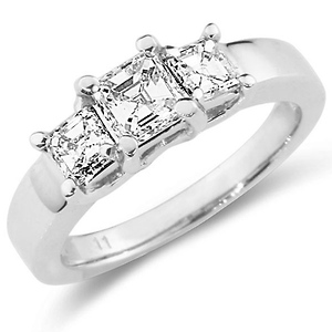 14K Three Stone Asscher Cut Diamond Engagement Ring
