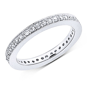 The innovative design in white gold makes our 0.50ct 14K White Gold Pave Set Eternity Ring an instant hit. Perfect for the contemporary woman who appreciates elegance and who wants her diamond ring to complement her own personal style.