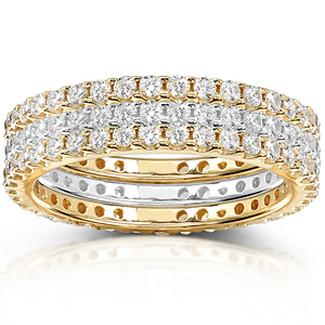 14KWY Gold 2.00 CTW Round Diamond 3 Piece Eternity Band Set