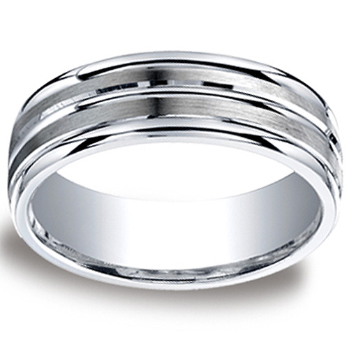 My husband and I bought this as a wedding band for him. The site says it could be "for him or for her", in my opinion it's definitely a for him wedding band and it looks great, nice shine, and feels durable. |
