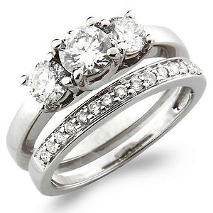 Also known as wedding ring sets, our collection of engagement ring sets includes a diamond engagement ring with a matching wedding band. Buying this wedding set not only offers brides the option to wear a matching set of rings but also comes with a great value and savings when bought together. This collection offers an exquisite selection of gold diamond rings in a variety of traditional and modern styles that can be worn together or separately.