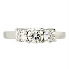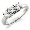 This graceful three stone diamond ring set features classic sparkling round cut stones in a gorgeous trellis design. The wedding band features 14 dazzling round diamonds in a secure prong setting, making this lovely selection perfect for any woman with an elegant style.