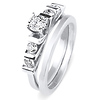 This ring set is beautiful. Made with 14K white gold and featuring a gorgeous central, round cut diamond with additional sparkling side diamonds, this is a dazzling and elegant selection. The wedding band is a flawless 14K white gold band - simple and timeless. A wonderful selection.