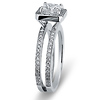 The pave set radiant cut engagement ring is a ring of true bliss. It has a unique split shank band with diamonds that extend nearly all the way around, appealing to elegant women everywhere.